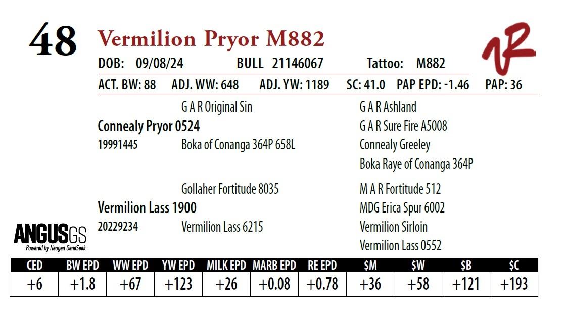 All bulls will be covered 50% by Vermilion Ranch if they are injured during their first breeding season. Breeding season is defined as the 60-day period following the first turnout of bulls.