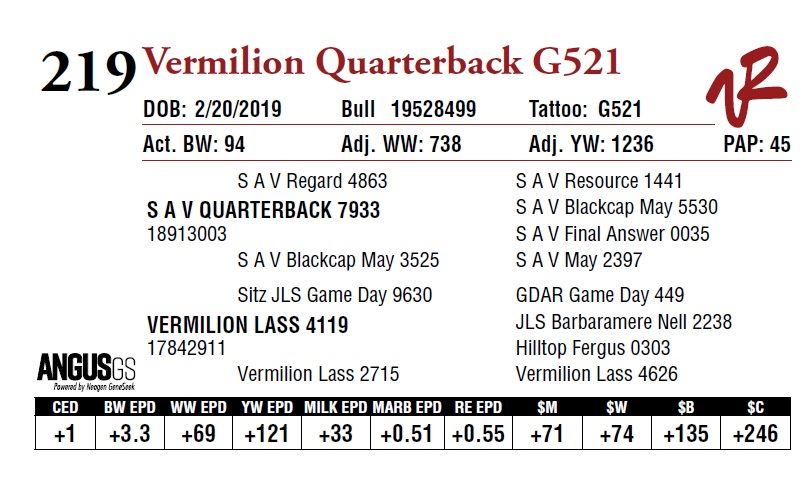 All bulls will be covered 50% by Vermilion Ranch if they are injured during their first breeding season. Breeding season is defined as the 60-day period following the first turnout of bulls.