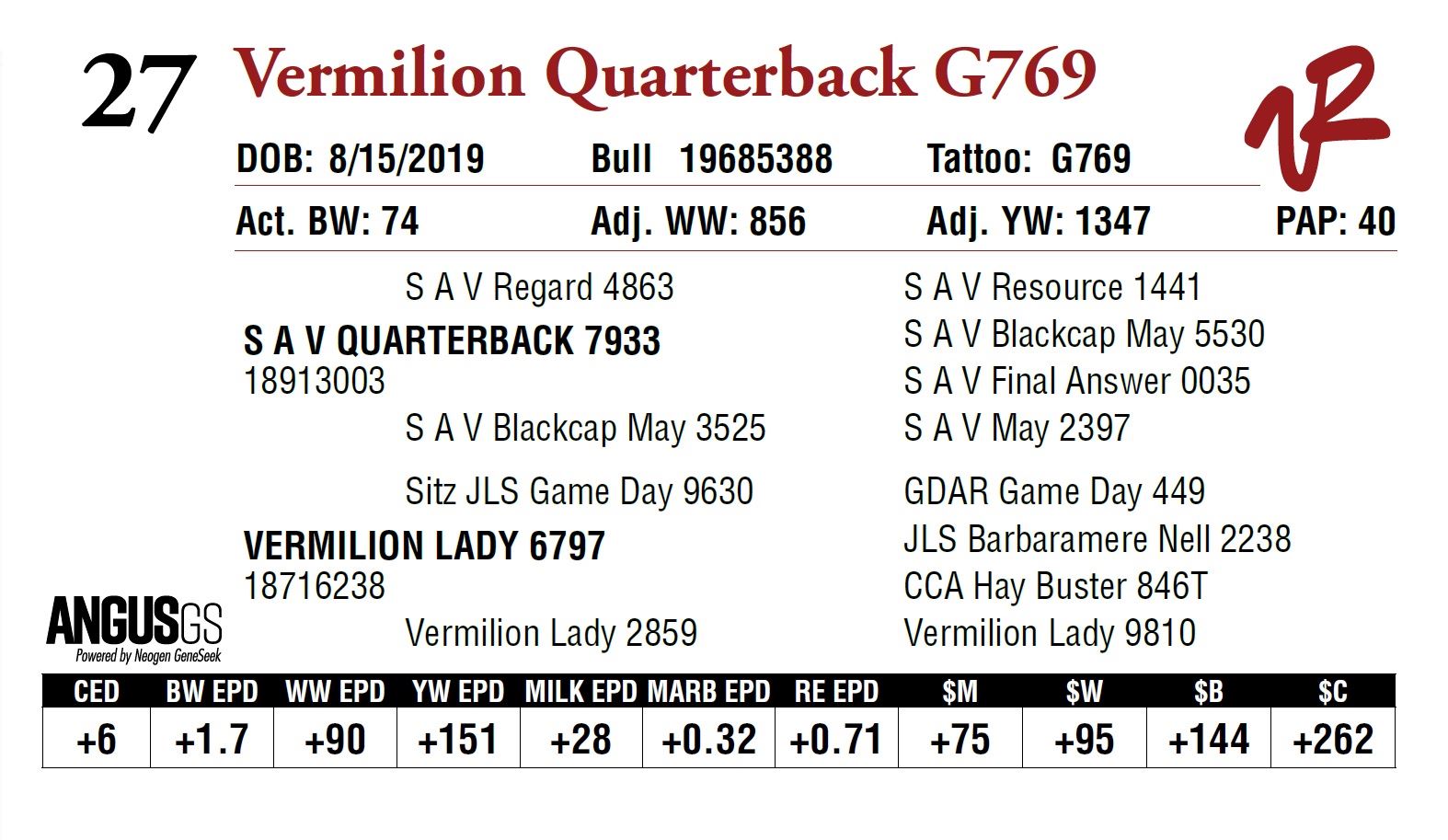 All bulls will be covered 50% by Vermilion Ranch if they are injured during their first breeding season. Breeding season is defined as the 60-day period following the first turnout of bulls.