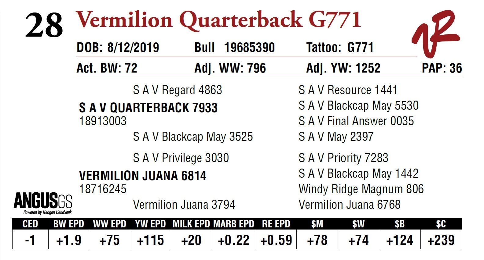 All bulls will be covered 50% by Vermilion Ranch if they are injured during their first breeding season. Breeding season is defined as the 60-day period following the first turnout of bulls.
