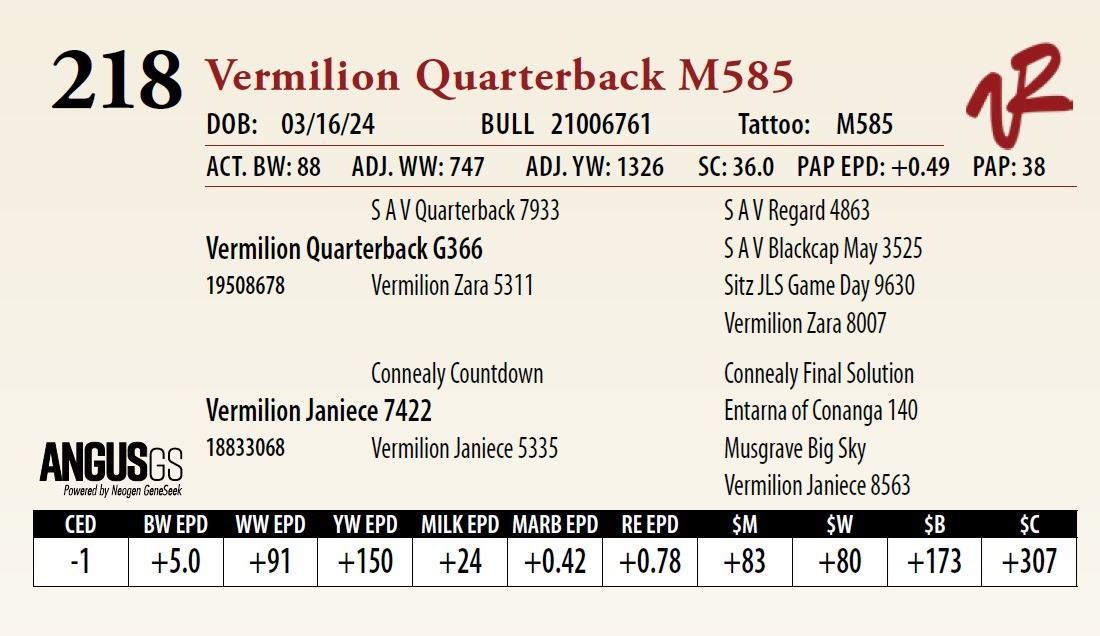 All bulls will be covered 50% by Vermilion Ranch if they are injured during their first breeding season. Breeding season is defined as the 60-day period following the first turnout of bulls.