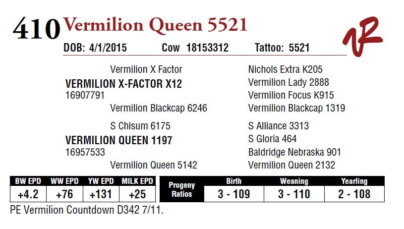 All bulls will be covered 50% by Vermilion Ranch if they are injured during their first breeding season. Breeding season is defined as the 60-day period following the first turnout of bulls.