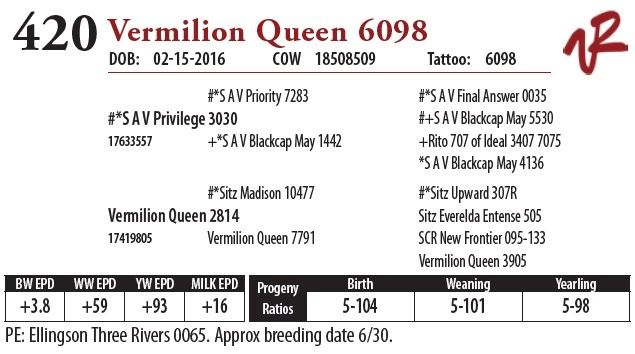 All bulls will be covered 50% by Vermilion Ranch if they are injured during their first breeding season. Breeding season is defined as the 60-day period following the first turnout of bulls.