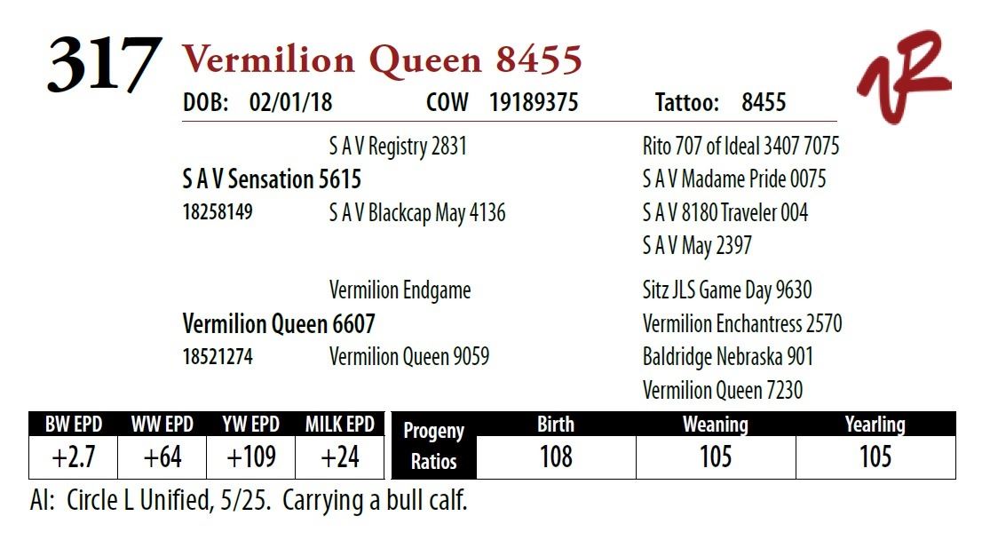 All bulls will be covered 50% by Vermilion Ranch if they are injured during their first breeding season. Breeding season is defined as the 60-day period following the first turnout of bulls.