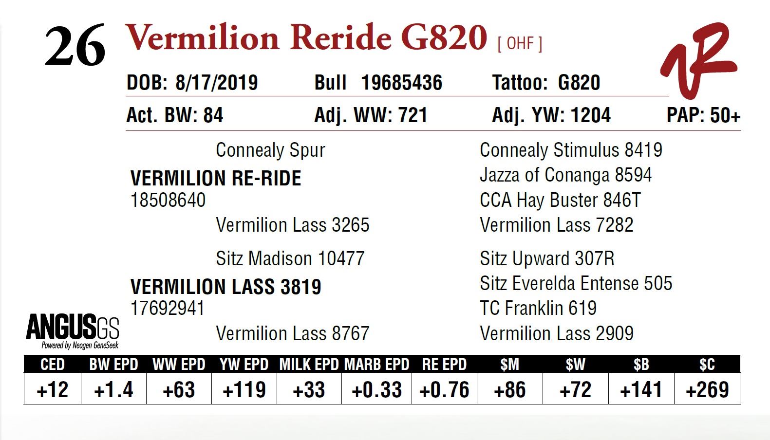 All bulls will be covered 50% by Vermilion Ranch if they are injured during their first breeding season. Breeding season is defined as the 60-day period following the first turnout of bulls.