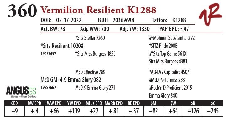 All bulls will be covered 50% by Vermilion Ranch if they are injured during their first breeding season. Breeding season is defined as the 60-day period following the first turnout of bulls.