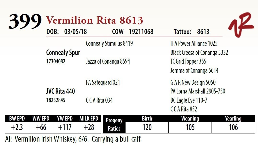 All bulls will be covered 50% by Vermilion Ranch if they are injured during their first breeding season. Breeding season is defined as the 60-day period following the first turnout of bulls.