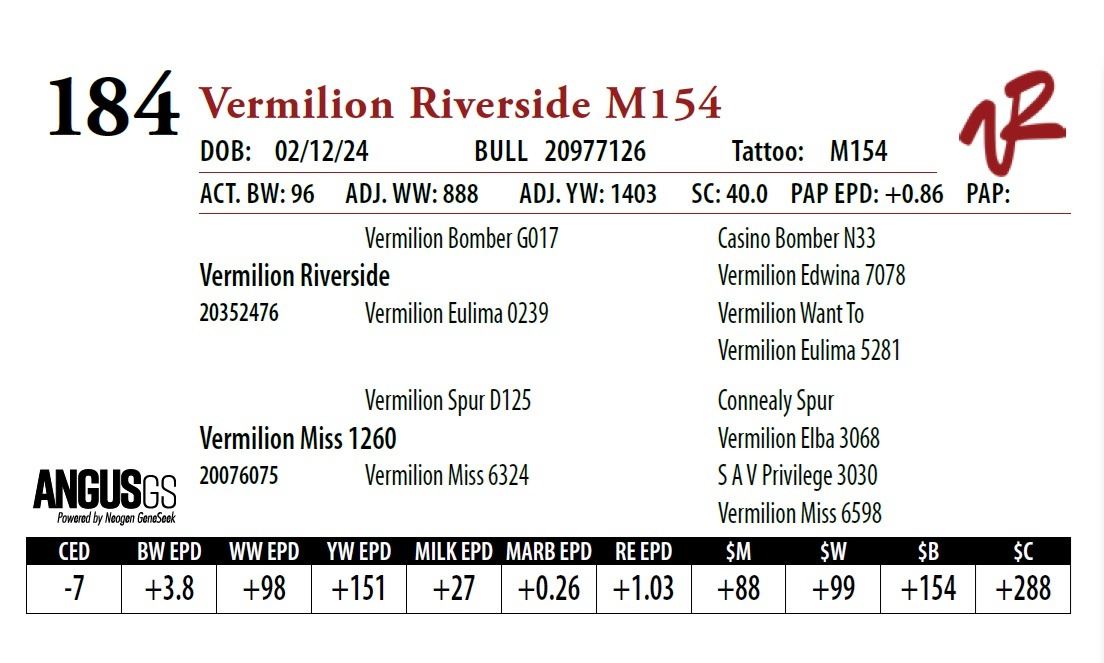 All bulls will be covered 50% by Vermilion Ranch if they are injured during their first breeding season. Breeding season is defined as the 60-day period following the first turnout of bulls.