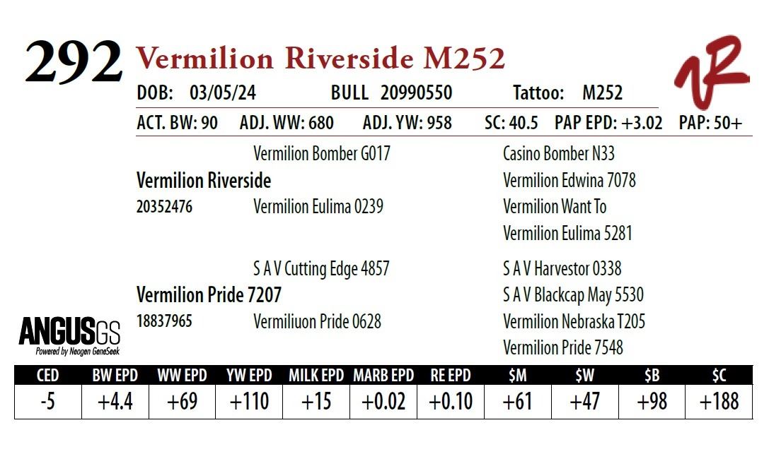 All bulls will be covered 50% by Vermilion Ranch if they are injured during their first breeding season. Breeding season is defined as the 60-day period following the first turnout of bulls.