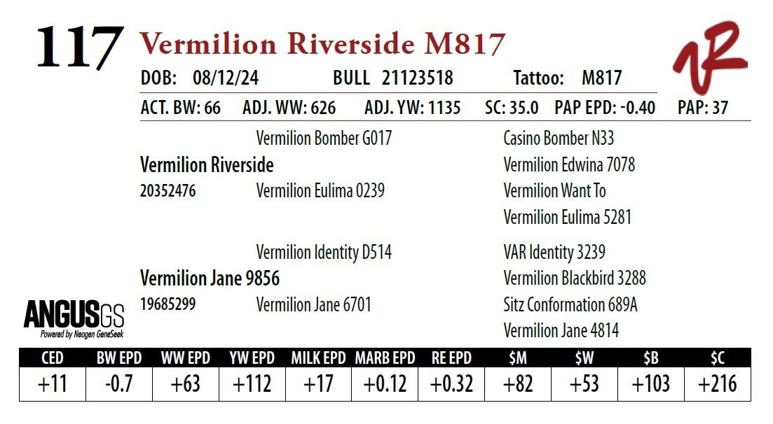 All bulls will be covered 50% by Vermilion Ranch if they are injured during their first breeding season. Breeding season is defined as the 60-day period following the first turnout of bulls.