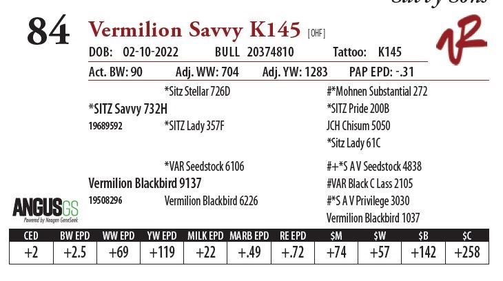 All bulls will be covered 50% by Vermilion Ranch if they are injured during their first breeding season. Breeding season is defined as the 60-day period following the first turnout of bulls.