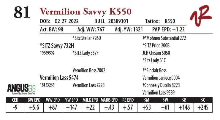 All bulls will be covered 50% by Vermilion Ranch if they are injured during their first breeding season. Breeding season is defined as the 60-day period following the first turnout of bulls.
