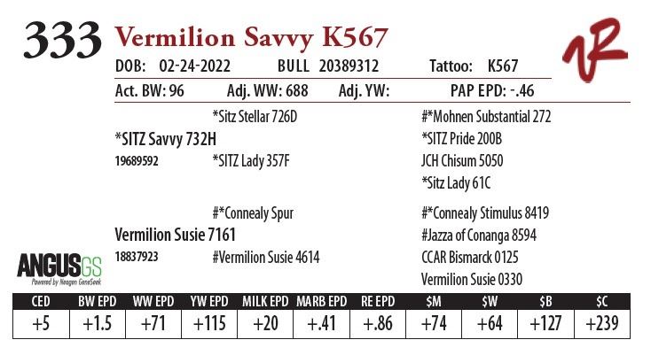All bulls will be covered 50% by Vermilion Ranch if they are injured during their first breeding season. Breeding season is defined as the 60-day period following the first turnout of bulls.