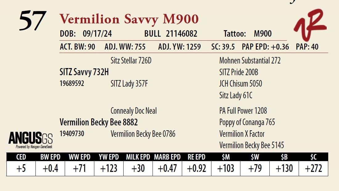 All bulls will be covered 50% by Vermilion Ranch if they are injured during their first breeding season. Breeding season is defined as the 60-day period following the first turnout of bulls.