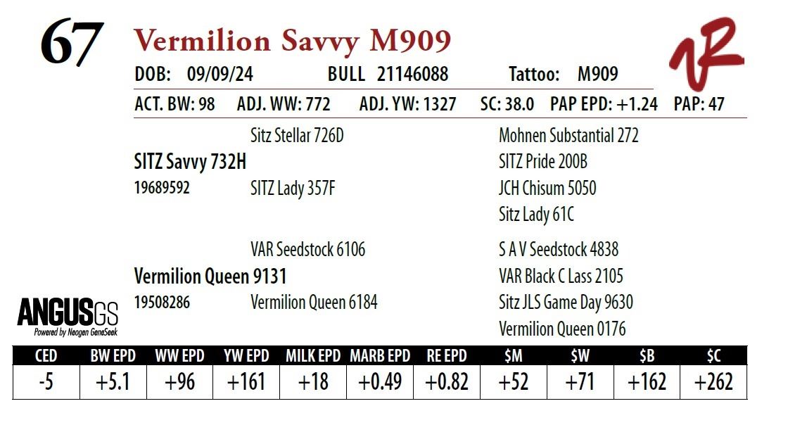All bulls will be covered 50% by Vermilion Ranch if they are injured during their first breeding season. Breeding season is defined as the 60-day period following the first turnout of bulls.
