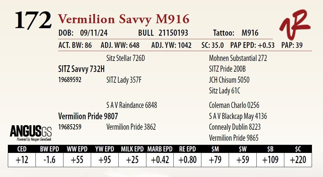 All bulls will be covered 50% by Vermilion Ranch if they are injured during their first breeding season. Breeding season is defined as the 60-day period following the first turnout of bulls.