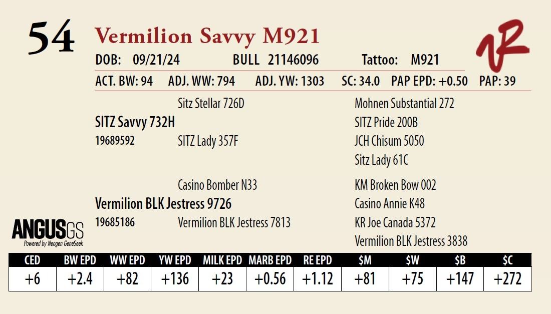 All bulls will be covered 50% by Vermilion Ranch if they are injured during their first breeding season. Breeding season is defined as the 60-day period following the first turnout of bulls.