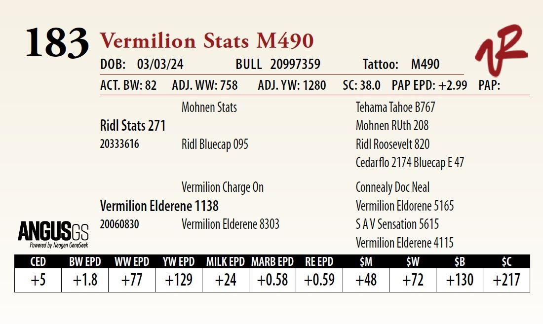 All bulls will be covered 50% by Vermilion Ranch if they are injured during their first breeding season. Breeding season is defined as the 60-day period following the first turnout of bulls.