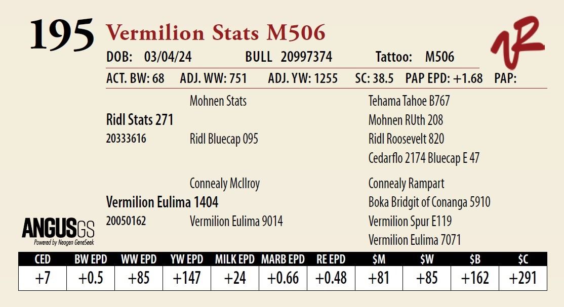 All bulls will be covered 50% by Vermilion Ranch if they are injured during their first breeding season. Breeding season is defined as the 60-day period following the first turnout of bulls.