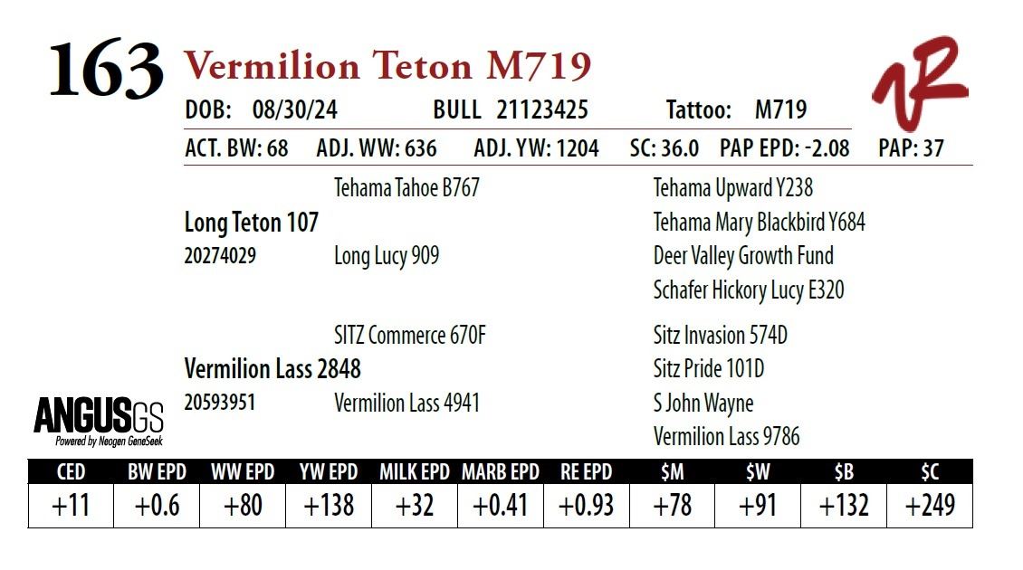 All bulls will be covered 50% by Vermilion Ranch if they are injured during their first breeding season. Breeding season is defined as the 60-day period following the first turnout of bulls.
