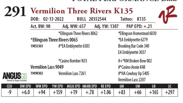 All bulls will be covered 50% by Vermilion Ranch if they are injured during their first breeding season. Breeding season is defined as the 60-day period following the first turnout of bulls.