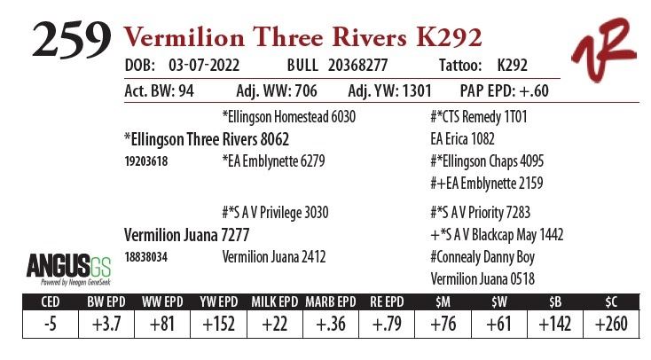 All bulls will be covered 50% by Vermilion Ranch if they are injured during their first breeding season. Breeding season is defined as the 60-day period following the first turnout of bulls.