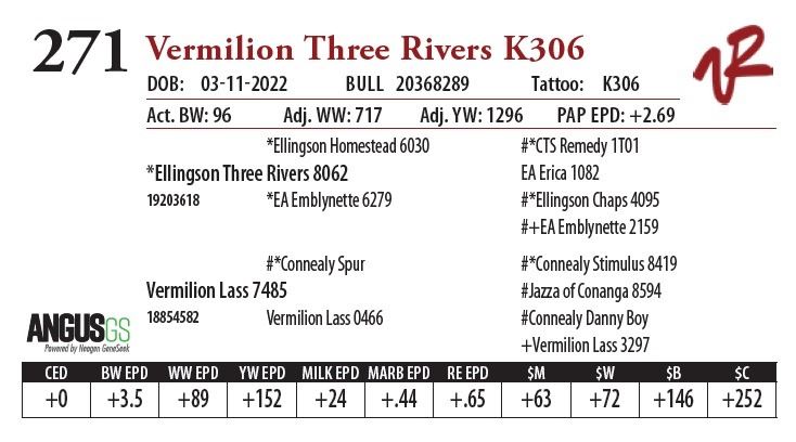 All bulls will be covered 50% by Vermilion Ranch if they are injured during their first breeding season. Breeding season is defined as the 60-day period following the first turnout of bulls.