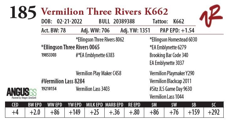 All bulls will be covered 50% by Vermilion Ranch if they are injured during their first breeding season. Breeding season is defined as the 60-day period following the first turnout of bulls.