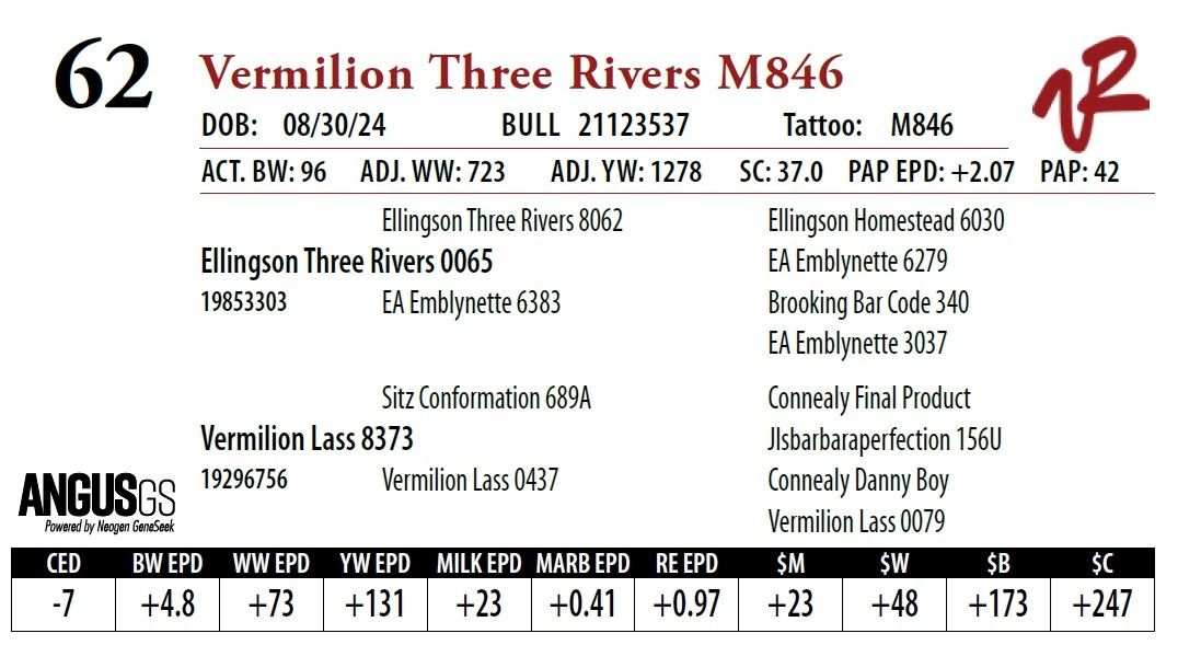 All bulls will be covered 50% by Vermilion Ranch if they are injured during their first breeding season. Breeding season is defined as the 60-day period following the first turnout of bulls.