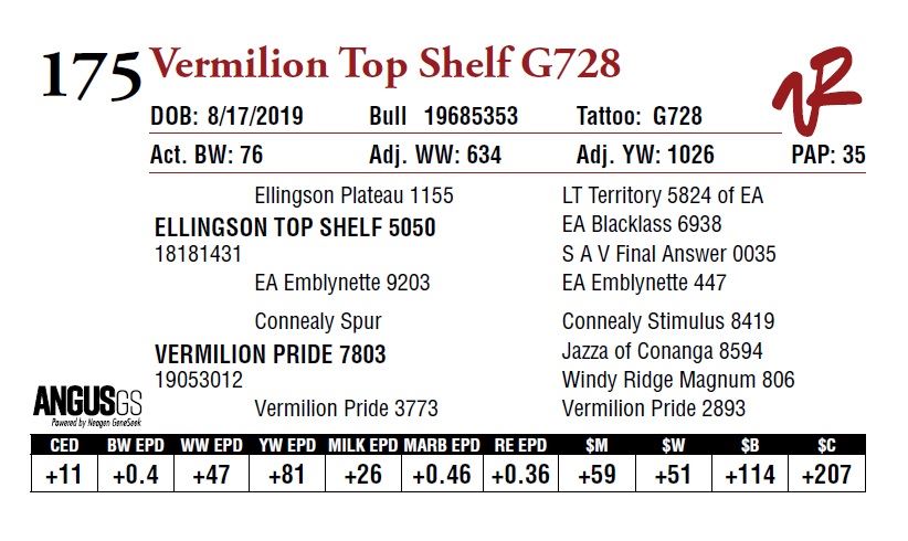 All bulls will be covered 50% by Vermilion Ranch if they are injured during their first breeding season. Breeding season is defined as the 60-day period following the first turnout of bulls.