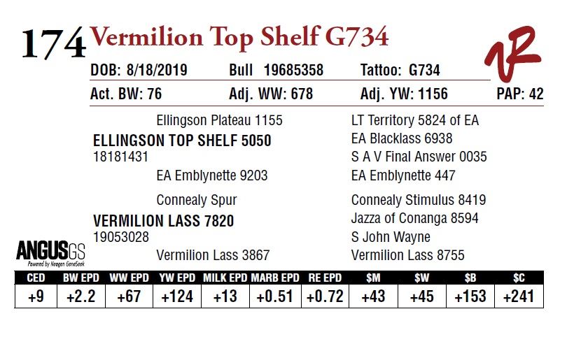 All bulls will be covered 50% by Vermilion Ranch if they are injured during their first breeding season. Breeding season is defined as the 60-day period following the first turnout of bulls.