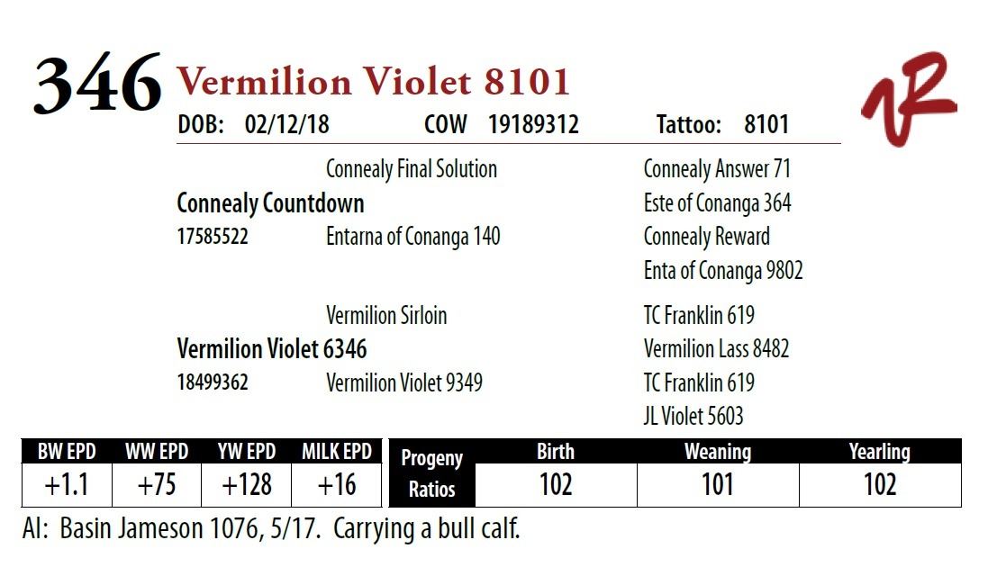All bulls will be covered 50% by Vermilion Ranch if they are injured during their first breeding season. Breeding season is defined as the 60-day period following the first turnout of bulls.