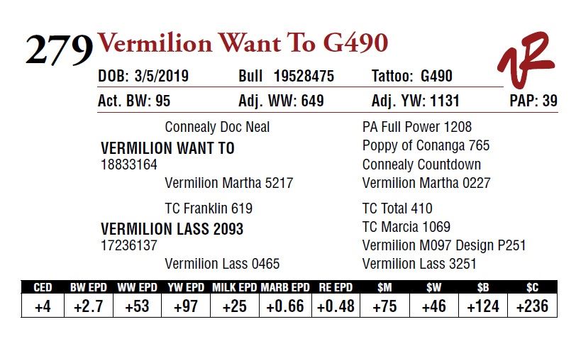 All bulls will be covered 50% by Vermilion Ranch if they are injured during their first breeding season. Breeding season is defined as the 60-day period following the first turnout of bulls.