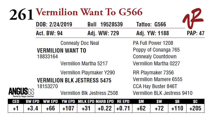 All bulls will be covered 50% by Vermilion Ranch if they are injured during their first breeding season. Breeding season is defined as the 60-day period following the first turnout of bulls.