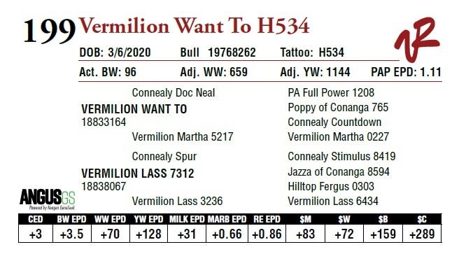 All bulls will be covered 50% by Vermilion Ranch if they are injured during their first breeding season. Breeding season is defined as the 60-day period following the first turnout of bulls.