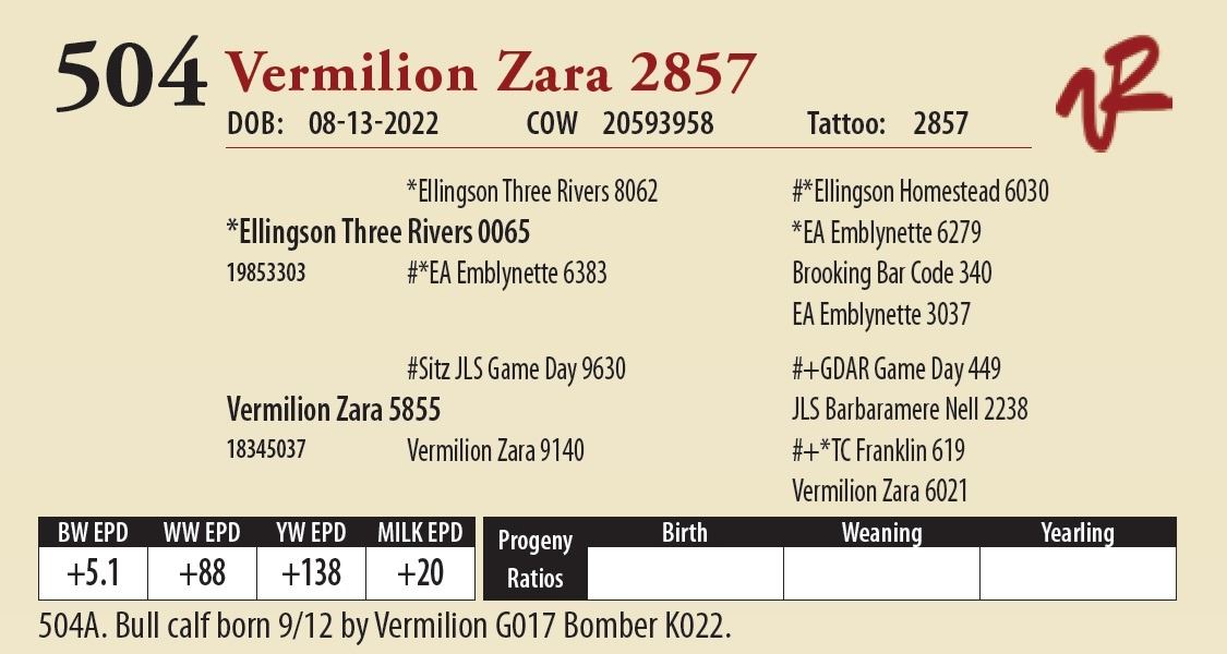 All bulls will be covered 50% by Vermilion Ranch if they are injured during their first breeding season. Breeding season is defined as the 60-day period following the first turnout of bulls.