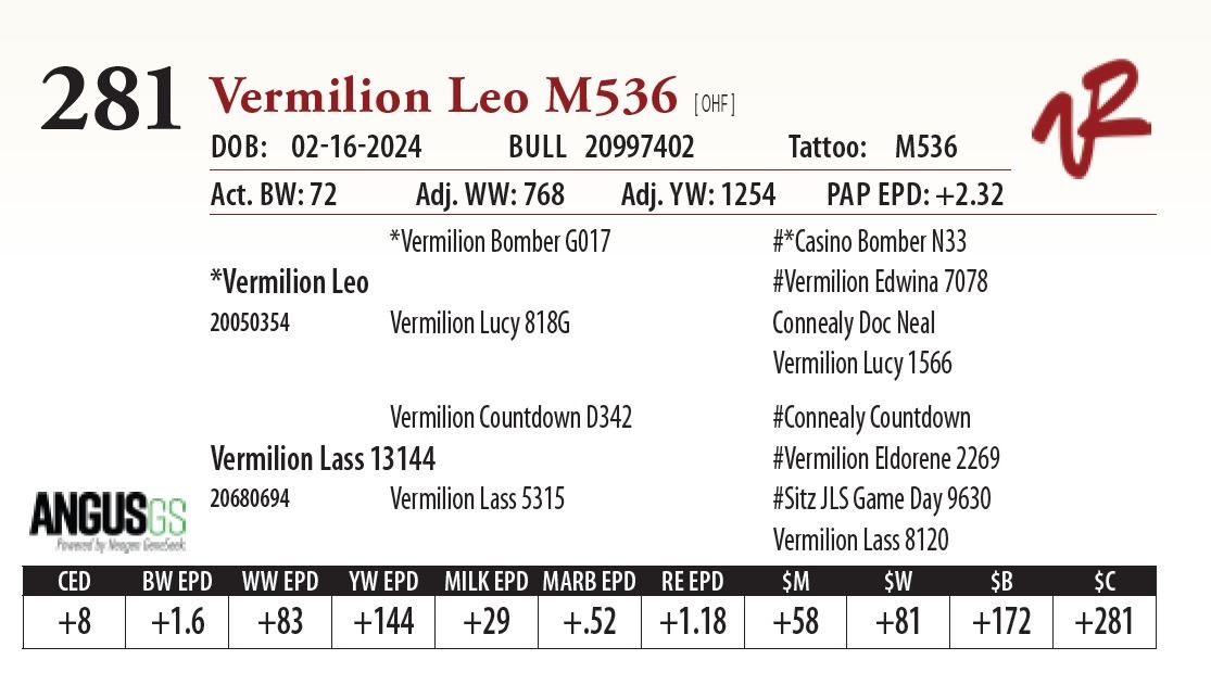 All bulls will be covered 50% by Vermilion Ranch if they are injured during their first breeding season. Breeding season is defined as the 60-day period following the first turnout of bulls.