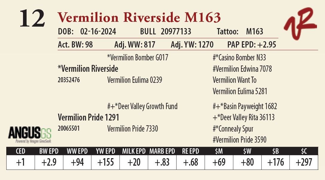 All bulls will be covered 50% by Vermilion Ranch if they are injured during their first breeding season. Breeding season is defined as the 60-day period following the first turnout of bulls.