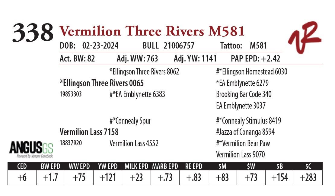 All bulls will be covered 50% by Vermilion Ranch if they are injured during their first breeding season. Breeding season is defined as the 60-day period following the first turnout of bulls.
