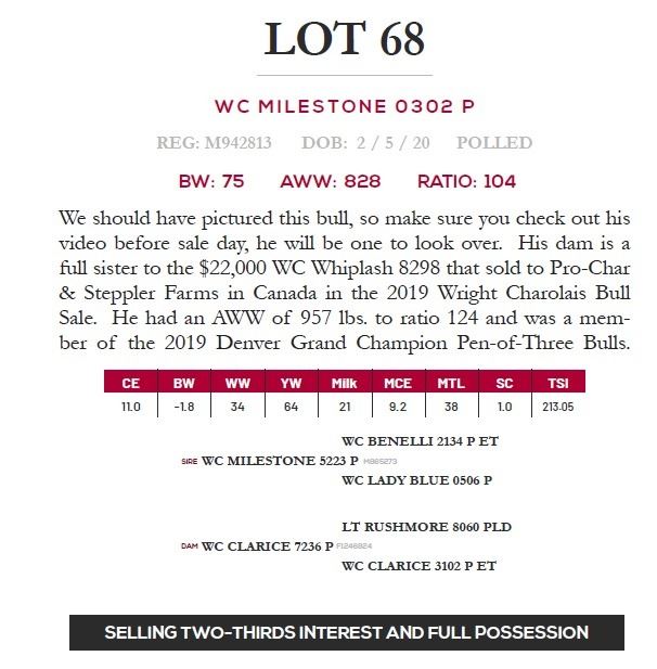 & Steppler Farms in Canada in the 2019 Wright Charolais Bull