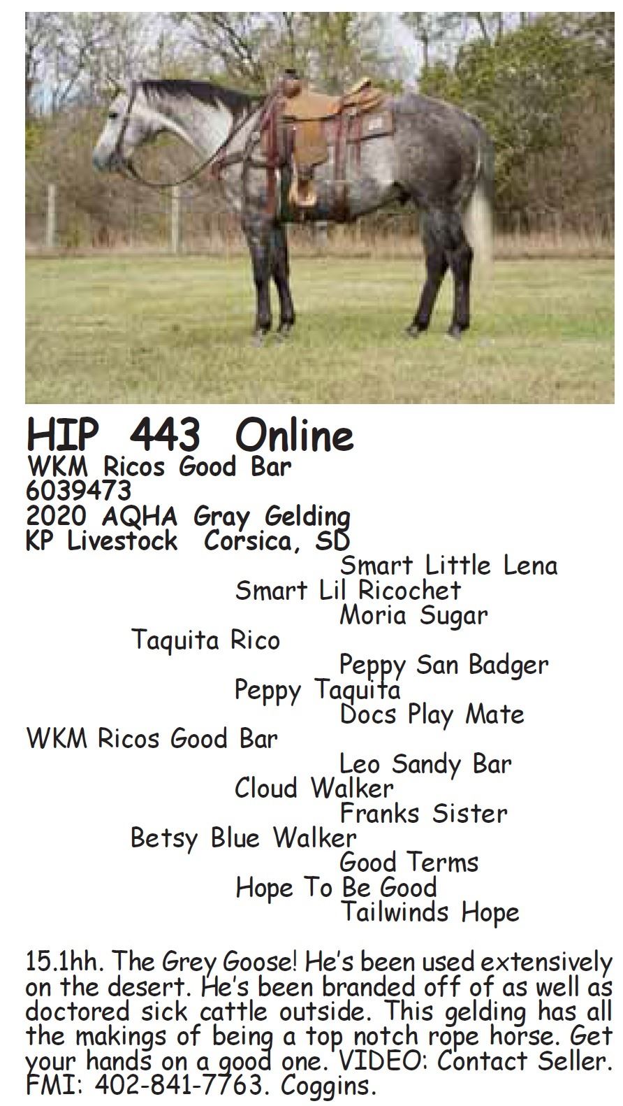 15.1hh. The Grey Goose! He’s been used extensively on the desert. He’s been branded off of as well as doctored sick cattle outside. This gelding has all the makings of being a top notch rope horse. Get your hands on a good one. VIDEO: Contact Seller. FMI: 402-841-7763. Coggins.