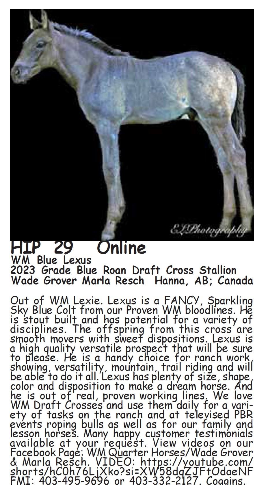 ALL OCTOBER 27-28 SALE HORSES WILL BE AUCTIONED LIVE AT BILLINGS LIVESTOCK – Internet bidding also available for Online/ ShowCase Internet Sale Session horses offered in this sale