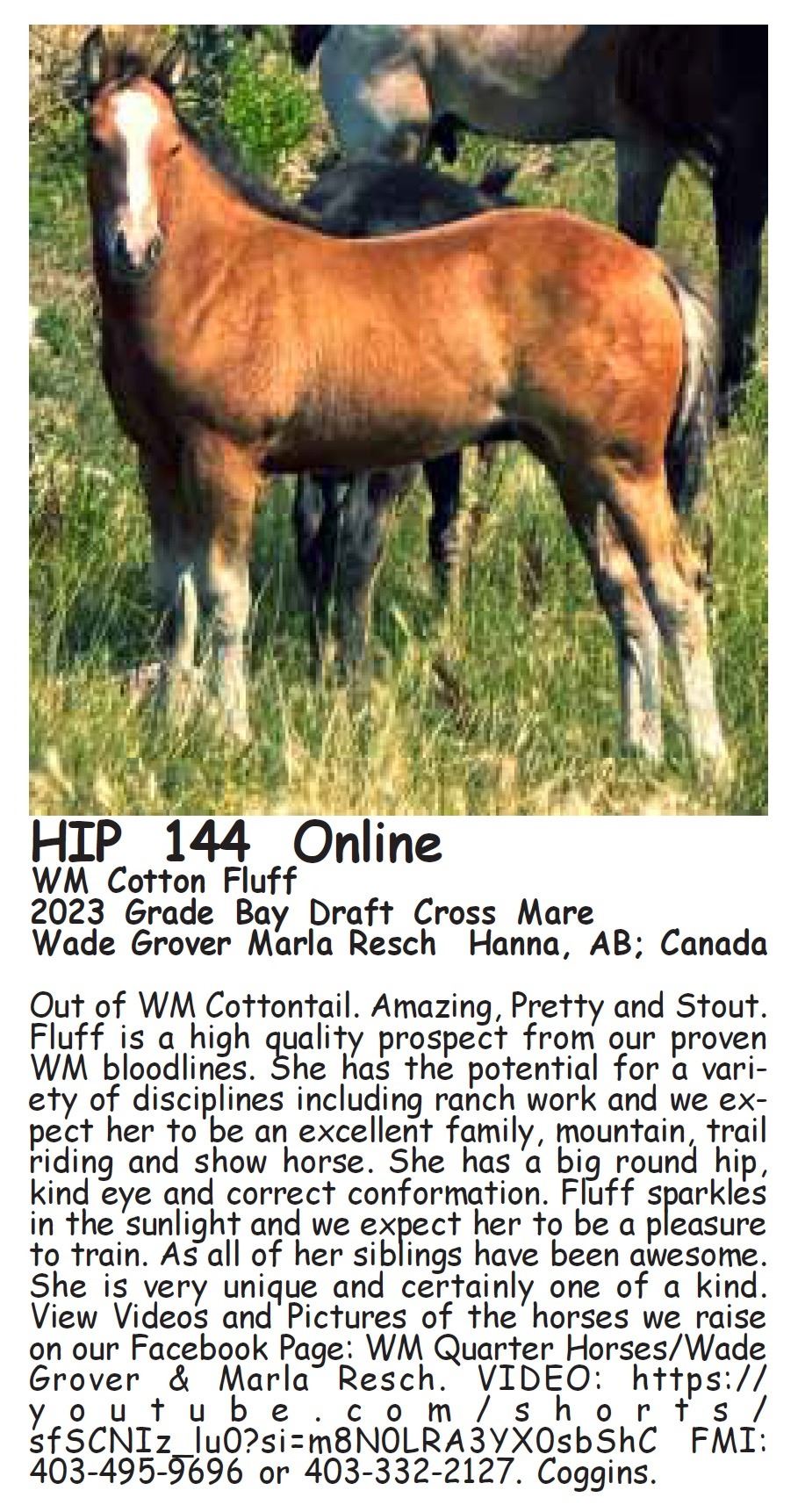 ALL OCTOBER 27-28 SALE HORSES WILL BE AUCTIONED LIVE AT BILLINGS LIVESTOCK – Internet bidding also available for Online/ ShowCase Internet Sale Session horses offered in this sale