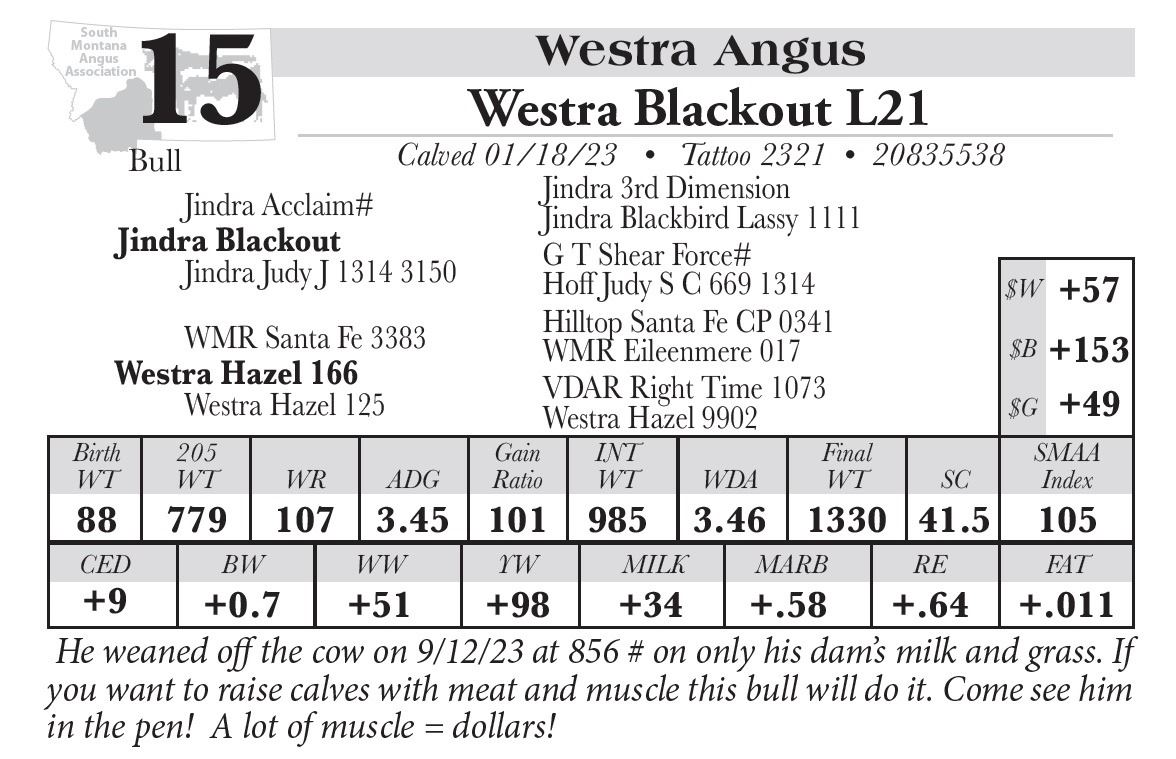 All persons who attend this sale do so at their own risk, legal or otherwise. South MT Angus assumes no liability for property loss or accident that may occur.