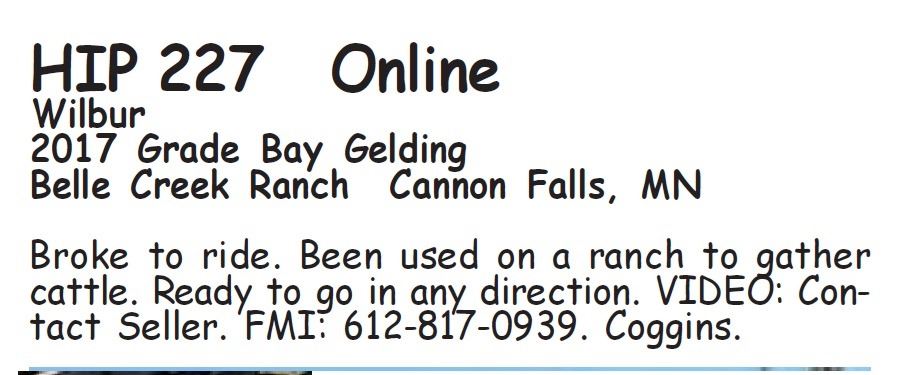 Wilbur - 2017 Grade Bay Gelding - Belle Creek Ranch, Cannon Falls, MN - Broke to ride. Been used on a ranch to gather cattle. Ready to go in any direction. VIDEO: Contact Seller. FMI: 612-817-0939. Coggins.