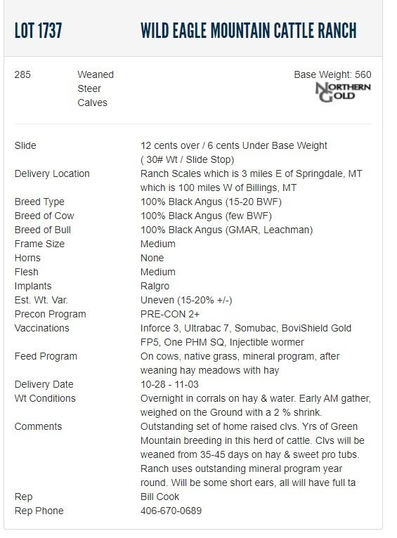 Comments Outstanding set of home raised clvs. Yrs of Green Mountain breeding in this herd of cattle. Clvs will be weaned from 35-45 days on hay & sweet pro tubs. Ranch uses outstanding mineral program year round. Will be some short ears, all will have full tails.