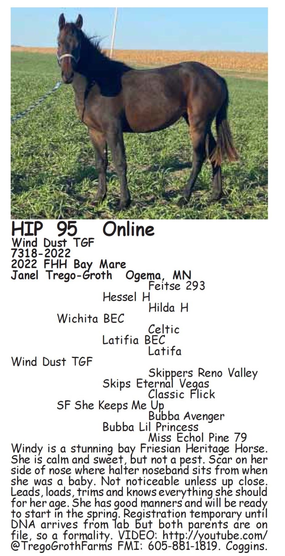 6. There is no guarantee of any kind as to the soundness or condition or other quality of any horse sold in this sale. Once the sale closes the sale is final.