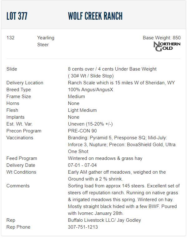 CommentsSorting load from approx 145 steers. Excellent set of steers off reputation ranch. Running on native grass & irrigated meadows this spring. Wintered on hay. Mostly straight black hided with a few BWF. Poured with Ivomec January 28th.