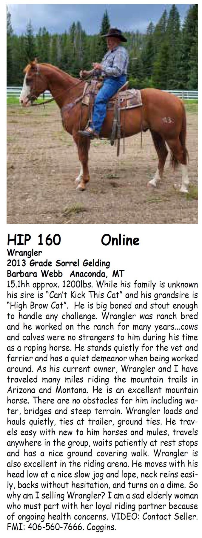 4. Horses are offered for sale according to the laws of the State of Montana, and the right to bid is reserved for all sellers in this sale.