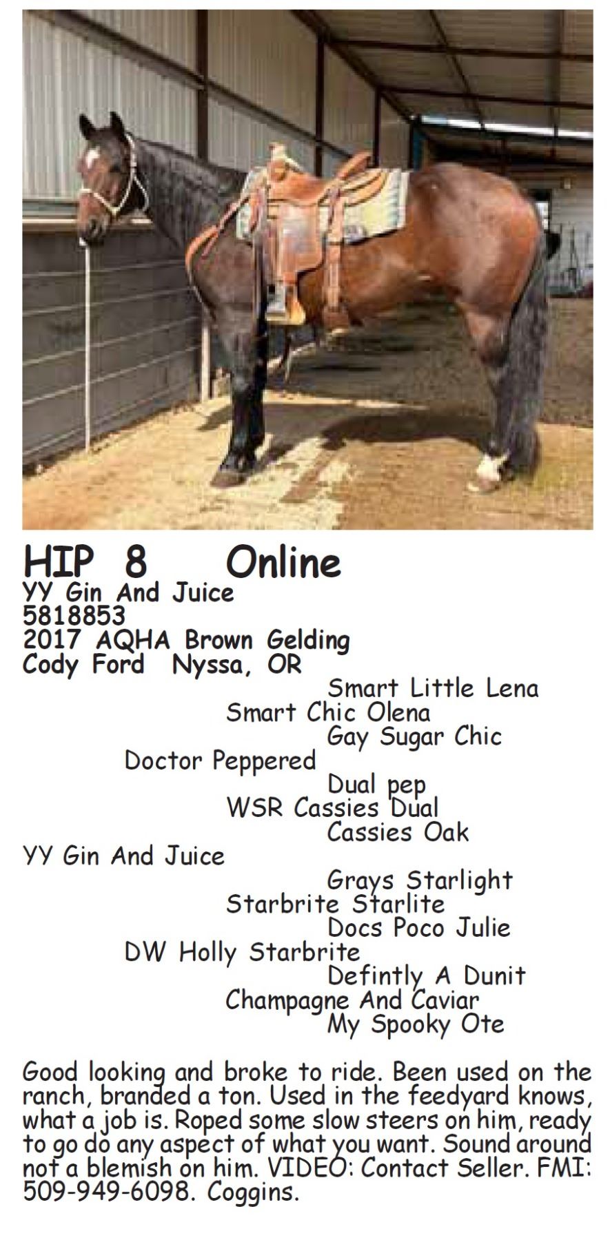 4. Horses are offered for sale according to the laws of the State of Montana, and the right to bid is reserved for all sellers in this sale.